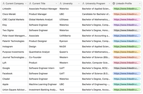 Browse our dataset of over 1500+ recent 2020 undergraduates.